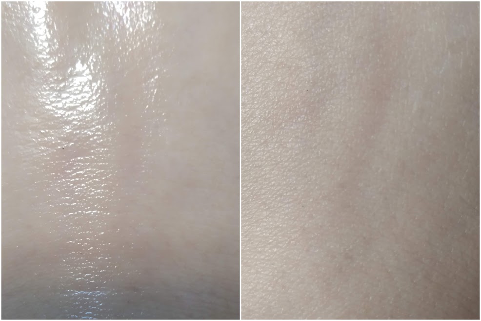 Não significa isso que a pele fique ressecada e repuxando com esse produto. Sinto que ele deixa a pele levemente sedosa e hidratada, mas bem sequinha ao toque.